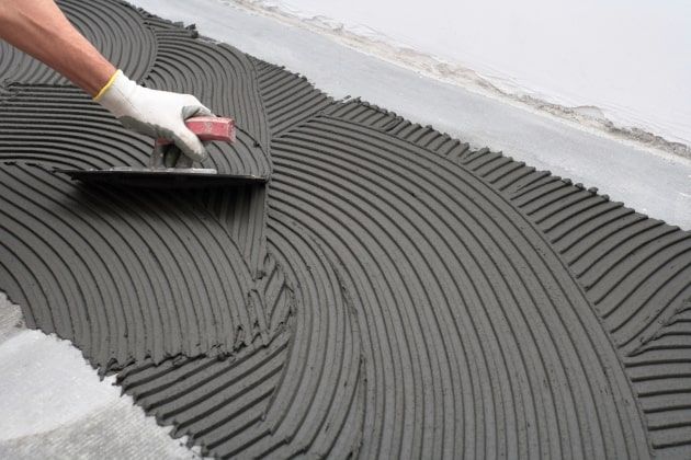 - Наносите клей зубчатым шпателем для равномерного покрытия.